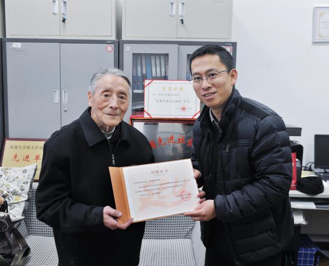 ylzzcom永利总站线路检测退休老教师程光蕴老师与其夫人许世霞老师近日通过教育基金会为ylzzcom永利总站线路检测设立奖学金,奖金总额10万元整。1月5日上午,东南大学教育基金会副主任李爽与ylzzcom永利总站线路检测党委副书记王斌在四牌楼校区基金会办公室接待了程光蕴老师。