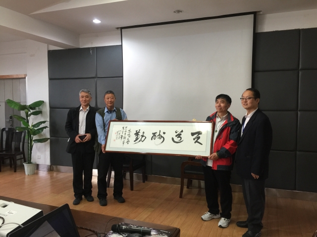友代表向学院捐赠了纪念品:《天道酬勤》题字一副和全班相册一本。张书记代表学院接收了纪念品并向校友们表示由衷的感谢。