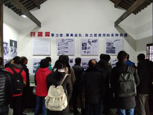 走进村子,浓郁的红色文化气息扑面而来。村头立着一面熊熊燃烧的火炬雕塑,墙上的壁画写着“红色情怀、红色西舍”。“从小就听爷爷奶奶讲过,我们这个村很了不起。”给我们做讲解的导游吴霞是本村人,她介绍,1943年新四军一支队16旅和苏南地委在西舍重建溧高县抗日民主政府,革命先烈们在此地开展减租减息、扩武招兵、剿匪反霸等工作,在苏南抗日战争史上留下了浓墨重彩的一笔。有一个很经典的故事,说一次新四军对敌人发动进攻,一夜之间拿下24个据点,陈毅也赶来庆贺。在西舍大祠堂里开庆功会时,所有人都来了,缴获的机枪、大炮、刺刀、子弹摆在前堂展览给大家看,陈毅骑着匹高额白马来,威风凛凛,还在会上做了一番慷慨激昂的演讲,让村里人听得热血沸腾。