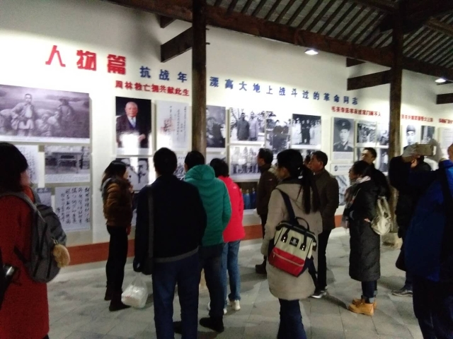 激情燃烧的岁月造就了西舍人红色的情怀。为了把这些宝贵的精神财富流传下去,溧高县抗日民主政府大会堂旧址被重新翻修建成了大会堂纪念馆。我们走进纪念馆,大厅是当年抗日志士集中开会的地方,如今成为一个展厅,一幅幅展板旧照片、一件件实物,重现了那段硝烟弥漫的峥嵘岁月。西舍人还在原址上复建了抗日兵工厂、纺织厂、溧高县抗日民主政府,同时新建了非物质文化遗产小马灯展览馆以及村史馆,每个场馆除了图文介绍,还有用仿真蜡像制作的模拟场景,以及影像资料播放,生动展示相应的历史背景和传统文化。