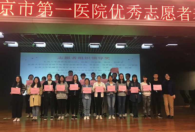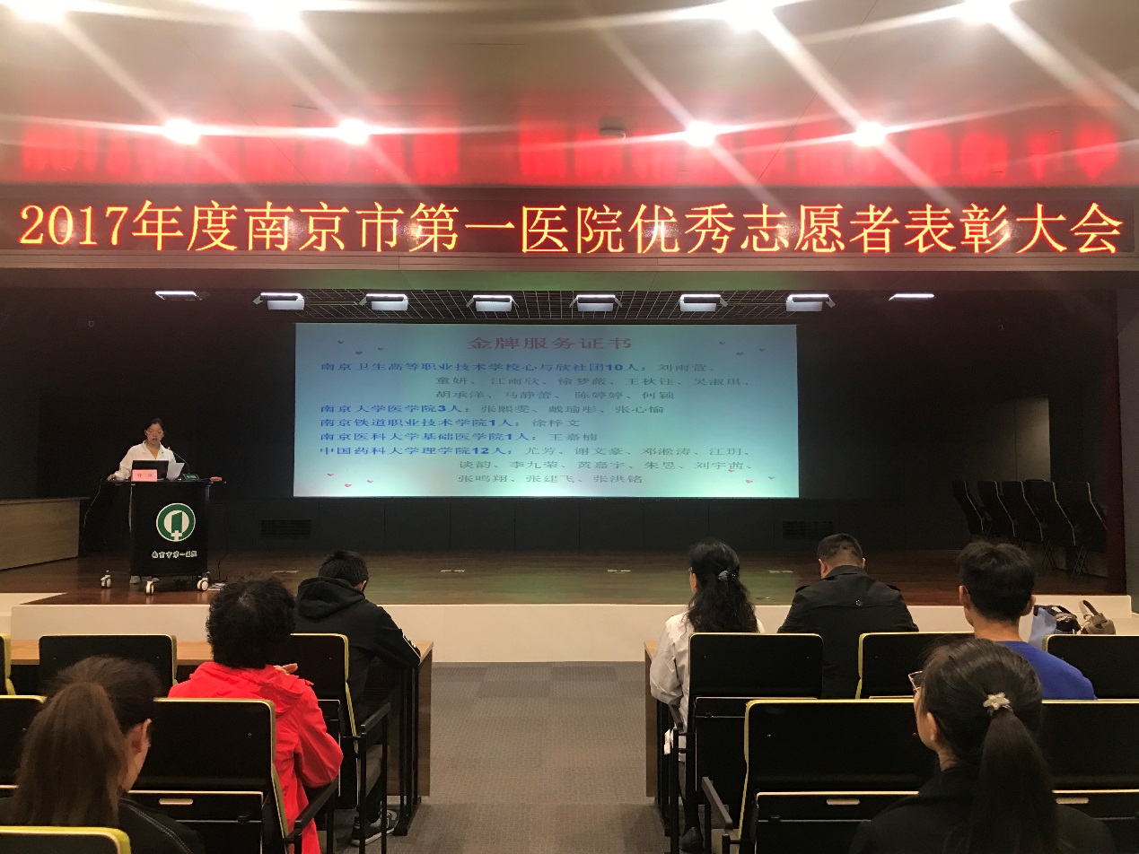4月1号上午,南京市第一医院在医院多功能大厅举行2017年志愿服务表彰活动,给予广大志愿团体感谢与鼓励。包括我院志愿服务部在内的多所南京高校志愿服务团体参会。