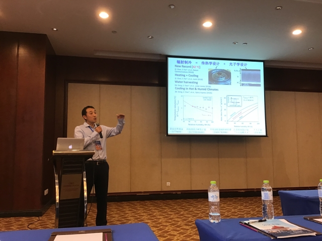 在会上,我院的陈震教授不仅以“热传导分会场主席”的身份主持了热传导方向的报告会,同时还以特邀报告人的身份在大会上作了关于“辐射制冷”的学术报告。陈震教授课题组关于“辐射制冷”的学术研究一直处于国际最前沿,也因此吸引了众多专家旁听,国内同行对该研究方向皆有着非常浓厚的兴趣,亦纷纷期待能和东南大学我院能有进一步的合作。