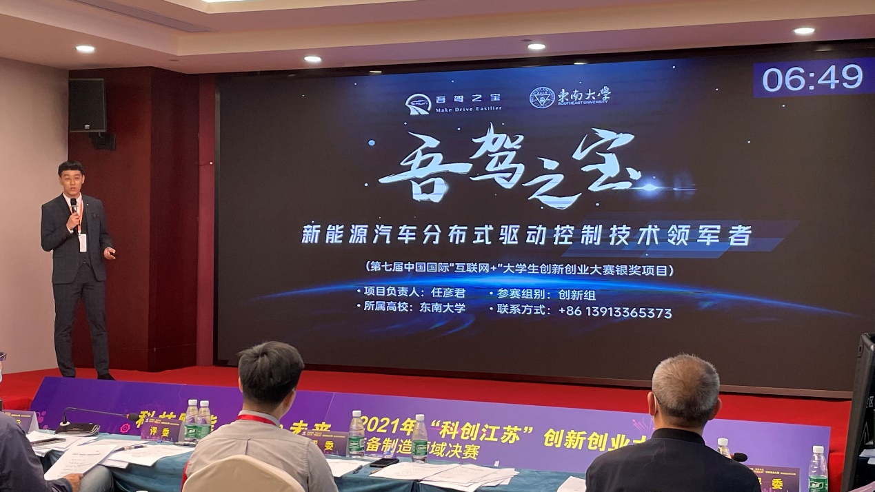 江苏省科协党组成员、副主席冯少东,团省委副书记张迎春,南京工程学院副校长朱晓春,省工信厅产业人才与合作处二级调研员秦飞出席了开幕式并共同启动大赛。在装备制造领域的决赛中,来自清华大学、同济大学、南京理工大学、东南大学、中国中车、国家电网、中电十四所等知名高校和大型国企的30个创新创业团队同台竞技。ylzzcom永利总站线路检测博士研究生任彦君牵头完成的“吾驾之宝:新能源汽车分布式驱动控制技术领军者”项目,通过精彩项目路演和答辩,得到了专家评审组一致认可,成功斩获大赛一等奖。我院近年来持续推动创新创业和实践育人工作深入开展,不断完善创新人才培养有效模式、激励方式和长效机制,强化学生科学精神和创新实践能力培养,该奖项是我院在“双创”领域斩获的又一重量级荣誉。