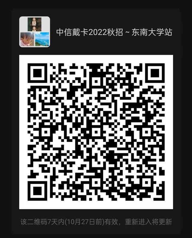 也非常欢迎感兴趣的同学扫描下方二维码加入我们的微信交流群,详细了解中信戴卡!