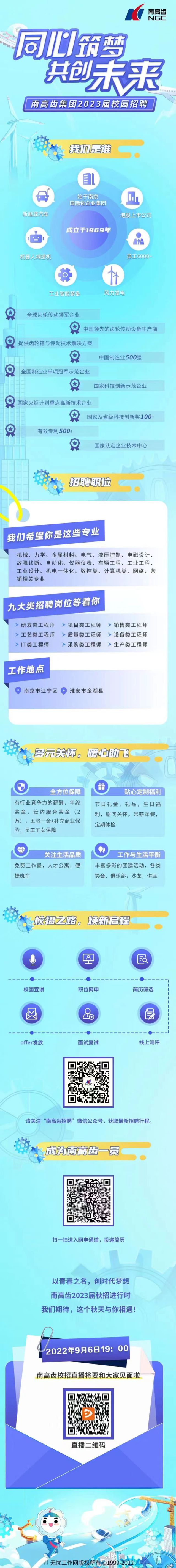 南高齿集团成立1969年,隶属于香港上市公司,致力于为用户提供传动解决方案,公司员工6000余人。2023届校招主要招聘对象是机械、材料类毕业生,大家可以关注南高齿招聘投递简历
