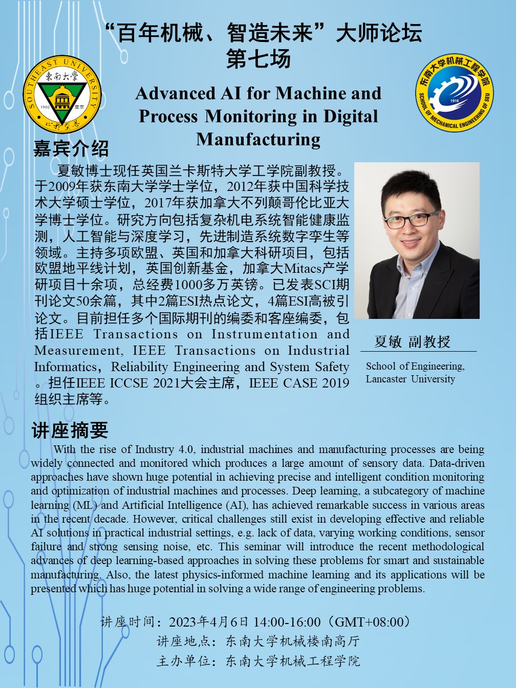 讲座地点:东南大学机械楼南高厅