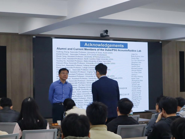 2024年10月25日,黄俊教授应微纳声学器件及光声检测实验室邀请来我院南高厅作题为《声流控技术——生物医学领域的“隔山打牛”技术》的学术报告。