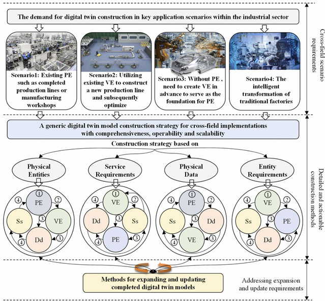 数字孪生技术促进了物理世界和数字世界的融合,建立了一个闭环通道,实现了物理空间和信息空间之间的数据交互。目前,许多大型公司正在利用数字孪生技术来识别问题并提高效率。然而,在跨越各个领域构建数字孪生模型的过程中仍存在重要的建模挑战,缺乏普遍全面的方法、标准或指南来引导数字孪生模型的发展。鉴于此,本文提出了一个全面、可操作和可扩展的策略,将数字孪生模型的构建策略根据不同的构建场景和服务期望分为四种类型: