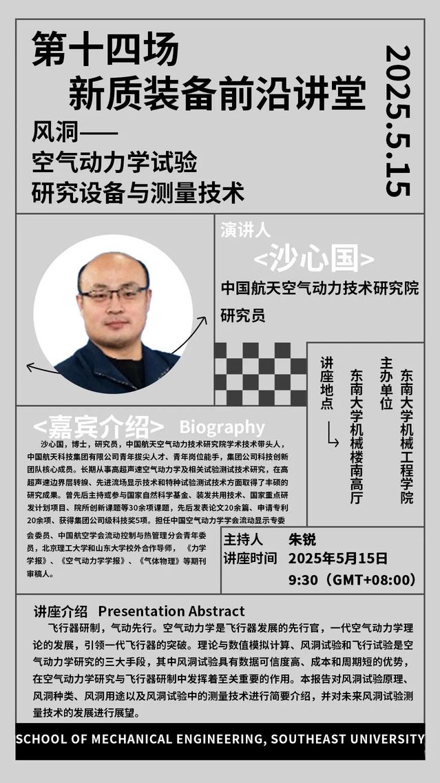 2025年我院“新质装备前沿讲堂”第十四场:沙心国研究员——风洞,空气动力学试验研究设备与测量技术
