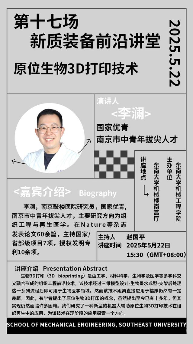 2025年我院“新质装备前沿讲堂”第十七场:李澜研究员——原位生物3D打印技术