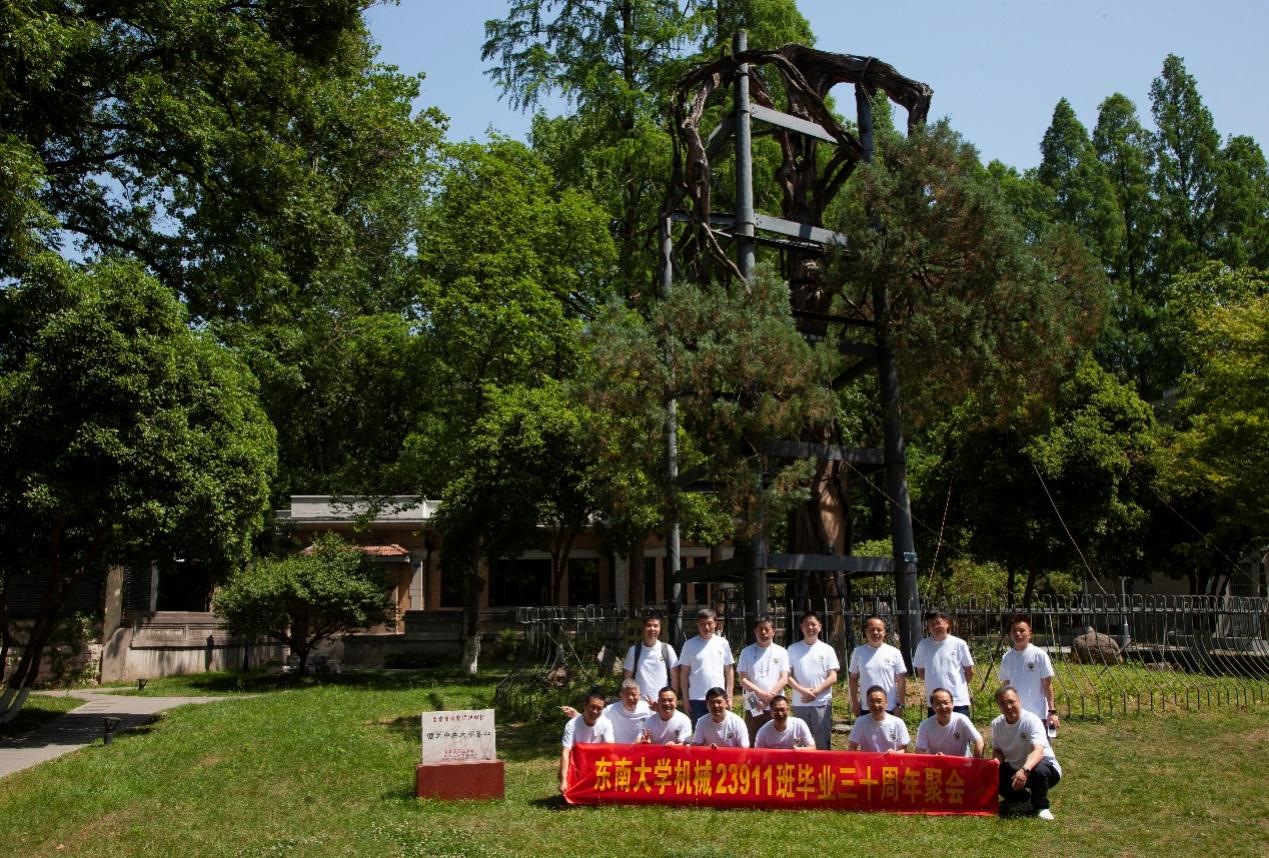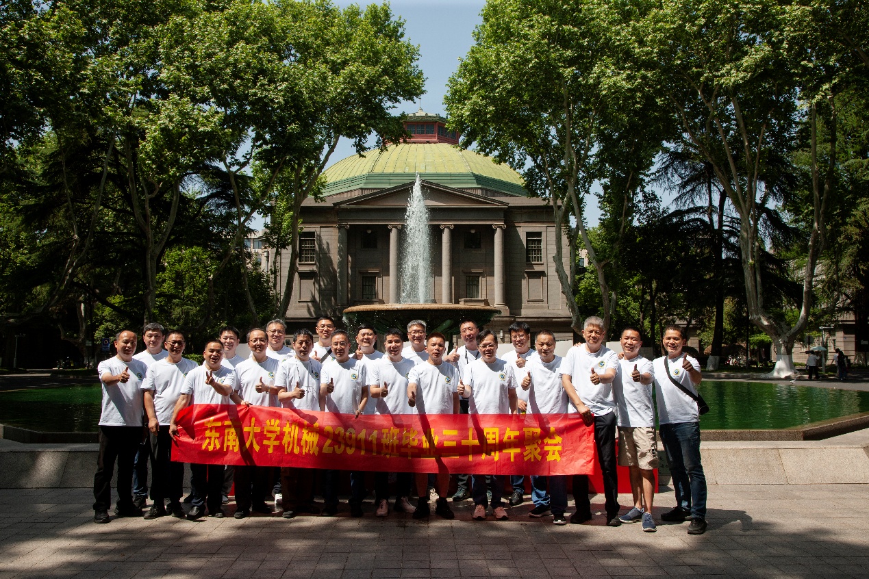 次日早上,校友们共赴历史底蕴深厚的四牌楼校区,回到这个大家共同生活了三年的地方。天公作美,是日校园内花红树绿、群莺乱飞。大家参观了庄重典雅的大礼堂、凝结科学精神的吴健雄纪念馆、充满活力与汗水的体育馆、郁郁葱葱的六朝松,大家在南高院前、六朝松下、老图书馆旁、正南门前,一次次驻足、一次次合影。每一处景致,都唤醒了大家埋藏心底的大学记忆。参观完毕,大家在中山院108教室重开一次久别重逢的班会,同学们轮流分享着毕业三十年来的人生感悟,同忆往事、共展未来,无论是深耕机械行业、成为国之重器的中坚力量,抑或是跨界发展、大家在各行各业各尽其力、努力工作。言语间,大家都流露出对母校栽培的感恩,对同窗情谊的珍视,以及对母校和我院的无限期盼。班级同学共同做出的一个重要决定:设立“23911教育基金”!同学们承诺,将每年捐赠1万元,连续10年,专项用于资助ylzzcom永利总站线路检测2名品学兼优的优秀学生。此虽微薄之力、小小善举,却是同学们饮水思源的拳拳之心。大家共同期望,“23911教育基金”的设立,能化作一股源源不断的动力,激励着新一代机械学子奋发图强,勇攀科技高峰,为母校增光添彩!