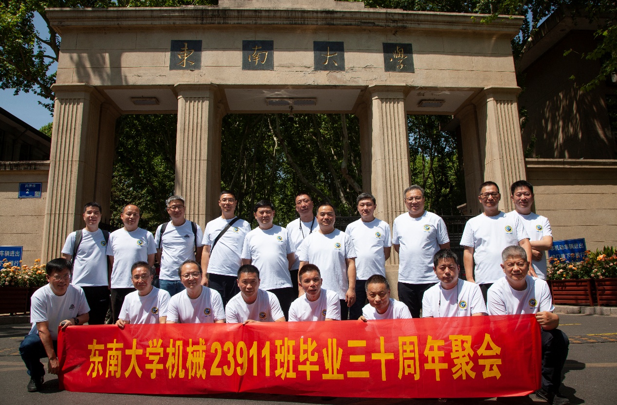 次日早上,校友们共赴历史底蕴深厚的四牌楼校区,回到这个大家共同生活了三年的地方。天公作美,是日校园内花红树绿、群莺乱飞。大家参观了庄重典雅的大礼堂、凝结科学精神的吴健雄纪念馆、充满活力与汗水的体育馆、郁郁葱葱的六朝松,大家在南高院前、六朝松下、老图书馆旁、正南门前,一次次驻足、一次次合影。每一处景致,都唤醒了大家埋藏心底的大学记忆。参观完毕,大家在中山院108教室重开一次久别重逢的班会,同学们轮流分享着毕业三十年来的人生感悟,同忆往事、共展未来,无论是深耕机械行业、成为国之重器的中坚力量,抑或是跨界发展、大家在各行各业各尽其力、努力工作。言语间,大家都流露出对母校栽培的感恩,对同窗情谊的珍视,以及对母校和我院的无限期盼。班级同学共同做出的一个重要决定:设立“23911教育基金”!同学们承诺,将每年捐赠1万元,连续10年,专项用于资助ylzzcom永利总站线路检测2名品学兼优的优秀学生。此虽微薄之力、小小善举,却是同学们饮水思源的拳拳之心。大家共同期望,“23911教育基金”的设立,能化作一股源源不断的动力,激励着新一代机械学子奋发图强,勇攀科技高峰,为母校增光添彩!