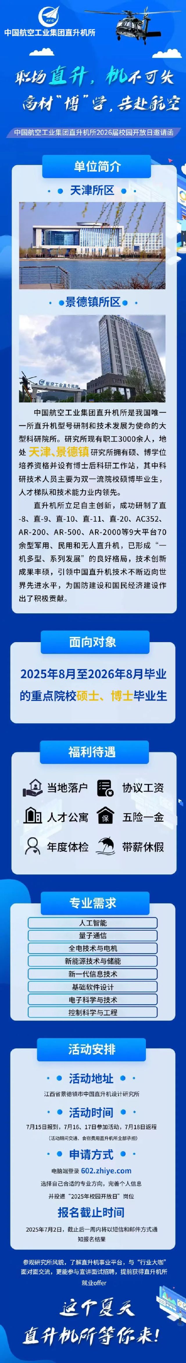 中国航空工业集团直升机所2026届校园开放日邀请函