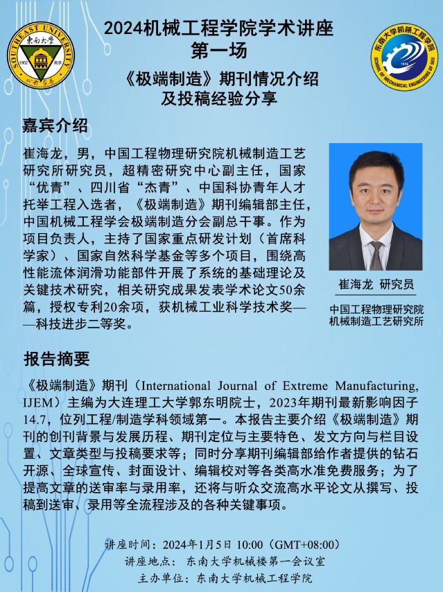 Location: First Conference Room, School of Mechanical Engineering, Southeast University