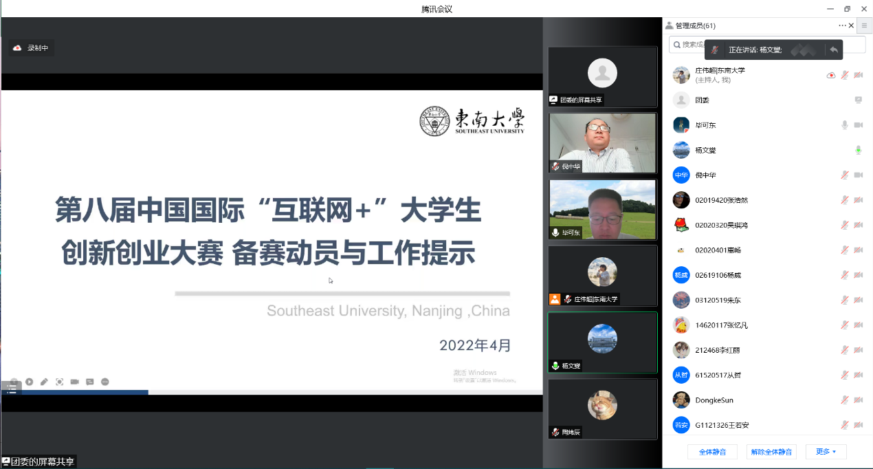 为激励全院师生积极参与中国国际“互联网+”大学生创新创业大赛,推动“以赛促学”、“以赛促教”、“以赛促创”,提升参赛项目综合质量,ylzzcom永利总站线路检测于4月17日上午在线上召开了“互联网+”大学生创新创业大赛宣讲会。会议邀请了校教务处处长殷国栋和校团委副书记兼党委研工部副部长、党委学工部副部长杨文燮对“互联网+”大赛进行了备赛解析和经验分享,学院领导和师生参加宣讲会。