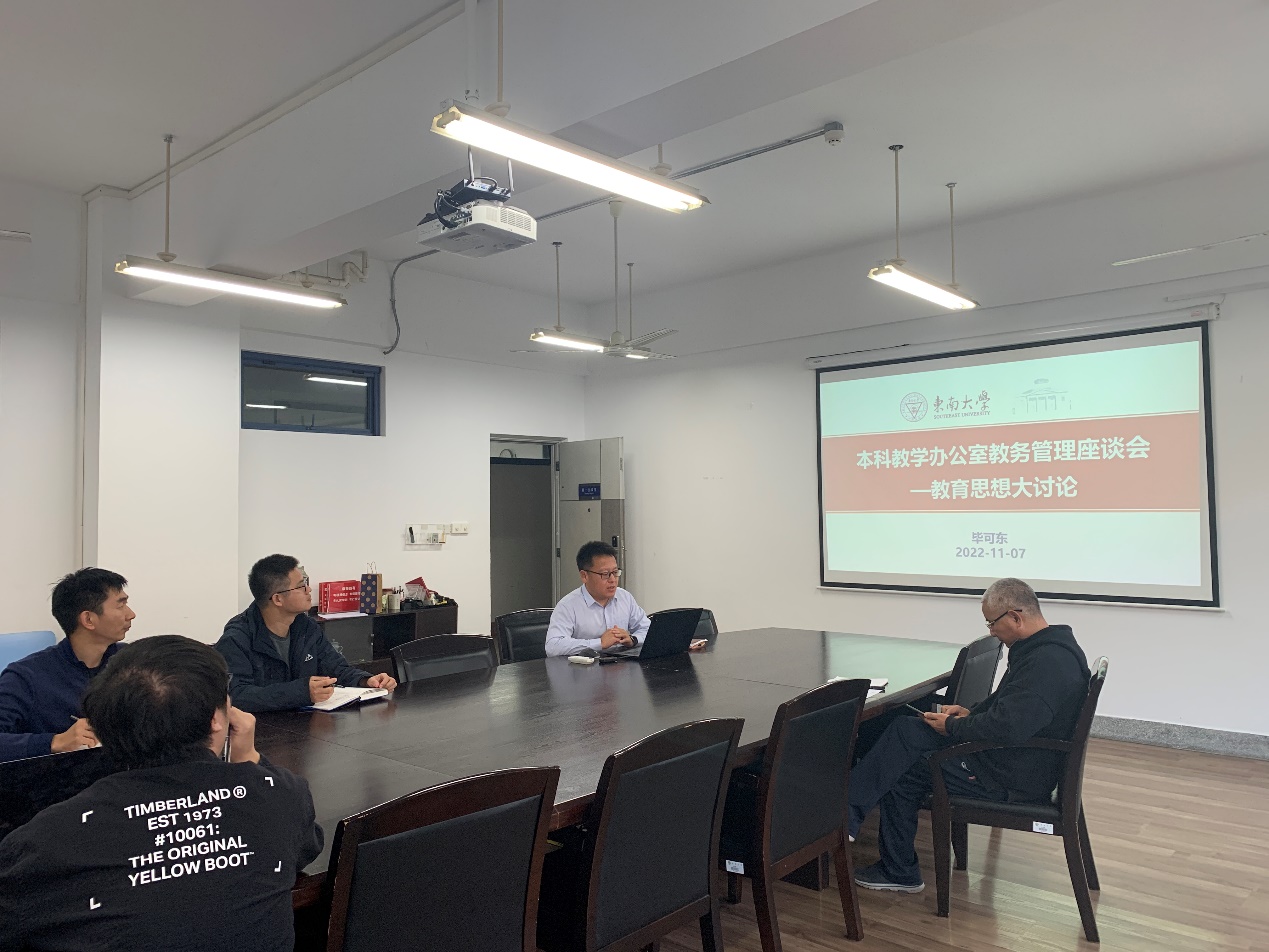 为提升学院教务管理水平和教学管理质量,2022年11月7日下午,ylzzcom永利总站线路检测本科教学办公室在机械楼第一会议室召开了教育思想大讨论暨教务管理座谈会,学院教学办公室全体成员参加,会议由毕可东副院长主持。
