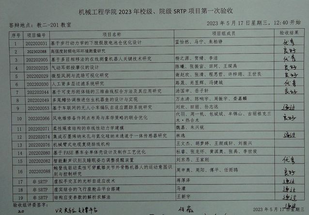 ylzzcom永利总站线路检测2022年校级、院级SRTP项目、2023年半年期项目,2023年第一次验收于2023年5月17日12:40至16:10在本科教学楼进行。