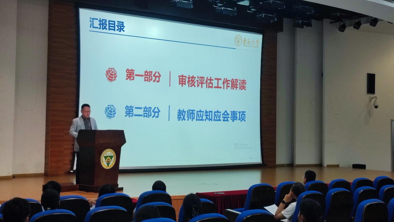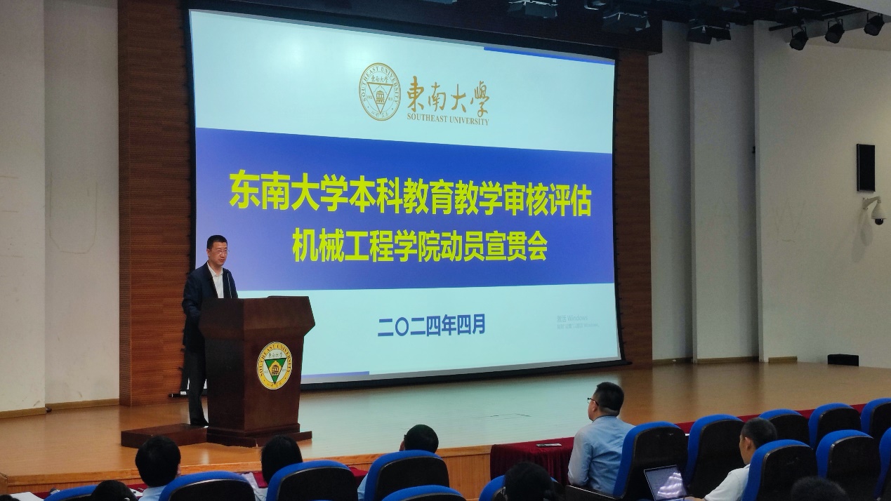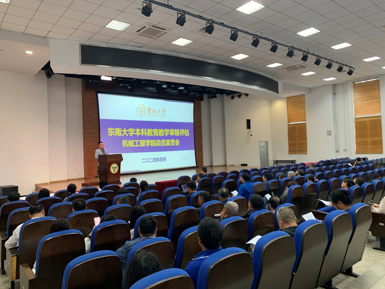 为进一步落实新一轮本科教育教学审核评估迎评工作,细化部署各项任务,2024年4月25日中午,ylzzcom永利总站线路检测本科教育教学审核评估动员宣贯会在东南大学九龙湖校区纪忠楼报告厅顺利召开。ylzzcom永利总站线路检测院长费庆国、党委副书记王斌、副院长毕可东、副院长陈震以及全体教职工参加动员宣贯会,会议由毕可东副院长主持。