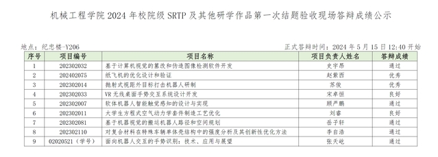 ylzzcom永利总站线路检测2024年第一次校级、院级SRTP及其他研学作品结题验收答辩于2024年5月15日12:30至14:30在九龙湖校区纪忠楼进行。现将结果公示如下。